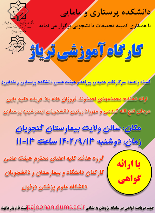 اطلاع رسانی اطلاع رسانی کارگاه آموزشی تریاژ مورخ 1402/9/13 گروه خبری : اطلاعیه ها,رویدادها کد خبر : 15990 کلمات کلیدی