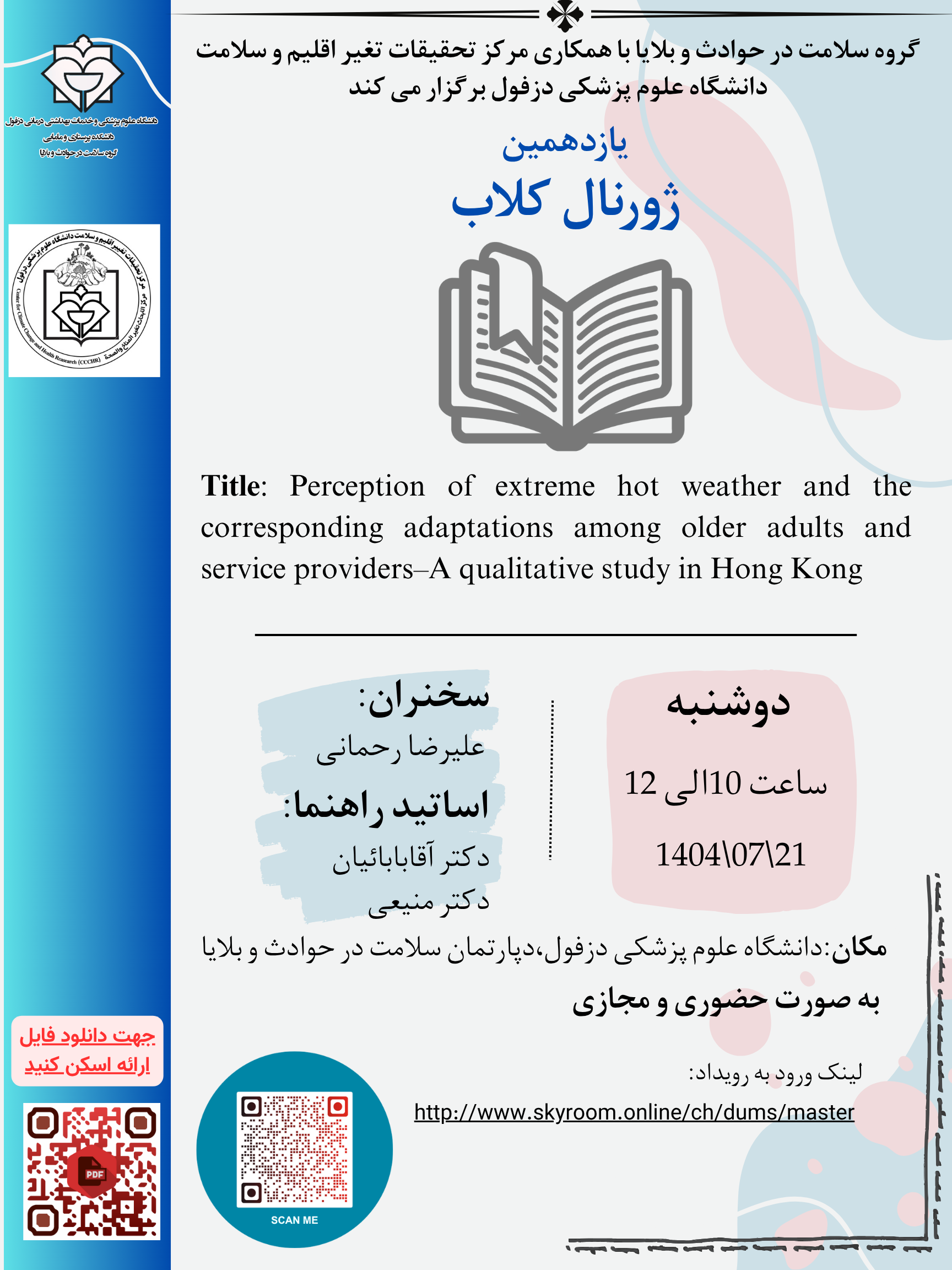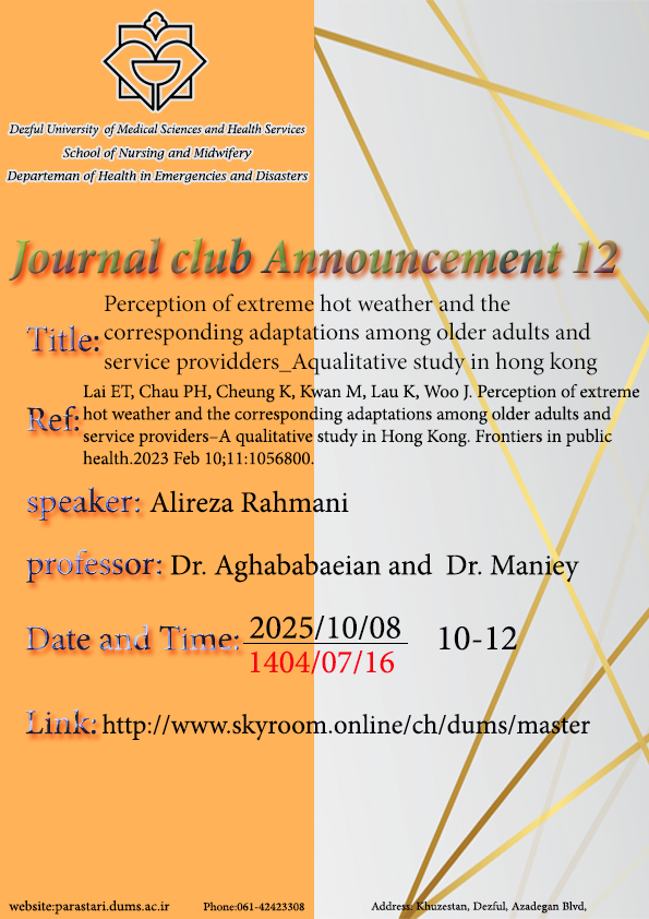 ژورنال کلاب دانشجویی گروه سلامت در حوادث و بلایا در تاریخ 21 مهر 1404 به صورت حضوری و مجازی برگزار شد.