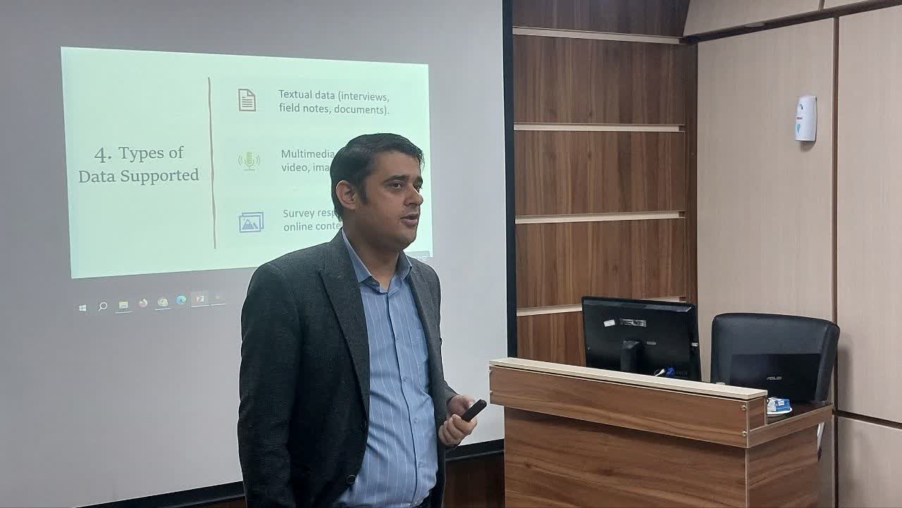 در راستای توانمندسازی اعضای محترم هیئت علمی و دانشجویان تحصیلات تکمیلی دانشگاه، سومین کارگاه مدرسه بهاره تحصیلات تکمیلی در تاریخ 1404/03/01 با عنوان ادغام فناوری در تحلیل داده های کیفی، با تدریس سرکارخانم دکتر کلانتریون ، جناب آقای دکتر امین حبیبی از اعضای هیئت علمی دانشگاه علوم پزشکی شهید بهشتی و سرکارخانم دکتر بساک عضو هیئت علمی دانشکده پرستاری و مامایی به مدت 5 ساعت در سالن معاونت آموزشی دانشگاه برگزار گردید.