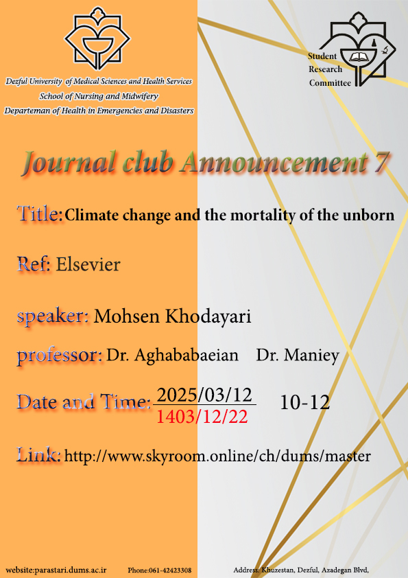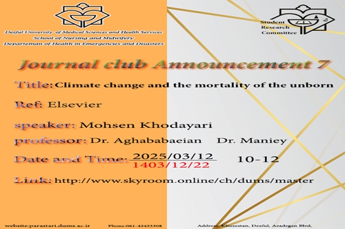 هفتمین ژورنال کلاب دانشجویان مقطع تحصیلات تکمیلی با موضوع  Climate change and the mortality of the unborn