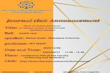 ژورنال کلاب دانشجویی مقطع تحصیلات تکمیلی  در تاریخ 17 آذر 1404 به صورت حضوری و مجازی برگزار شد.در این جلسه، خانم مهسا اسدی و محدثه عرفان پور، دانشجویان کارشناسی ارشد پرستاری مراقبت های ویژه نوزادان، با راهنمایی خانم مجیدی پور