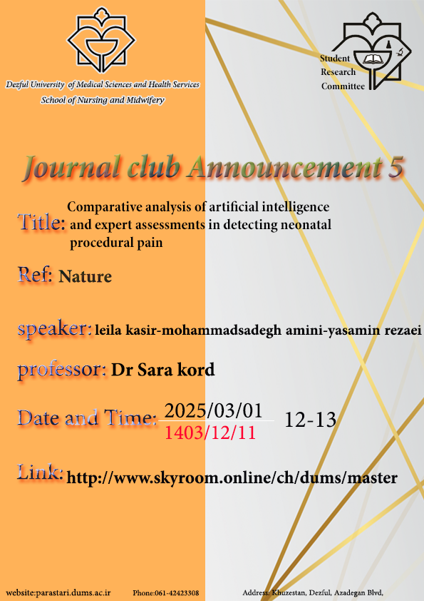 پنجمین ژورنال کلاب دانشجویان مقطع تحصیلات تکمیلی با موضوع  comparative analysis of artificial intelligence and expert assessments in detecting neonatal procedural pain