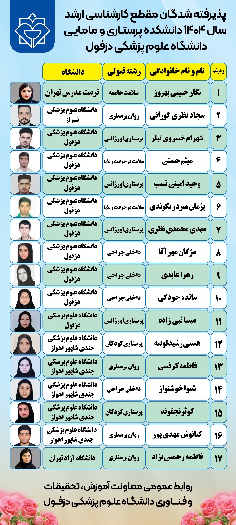 پذیرفته شدگان مقطع کارشناسی ارشد دانشکده پرستاری و مامایی در سال تحصیلی 1405.1404