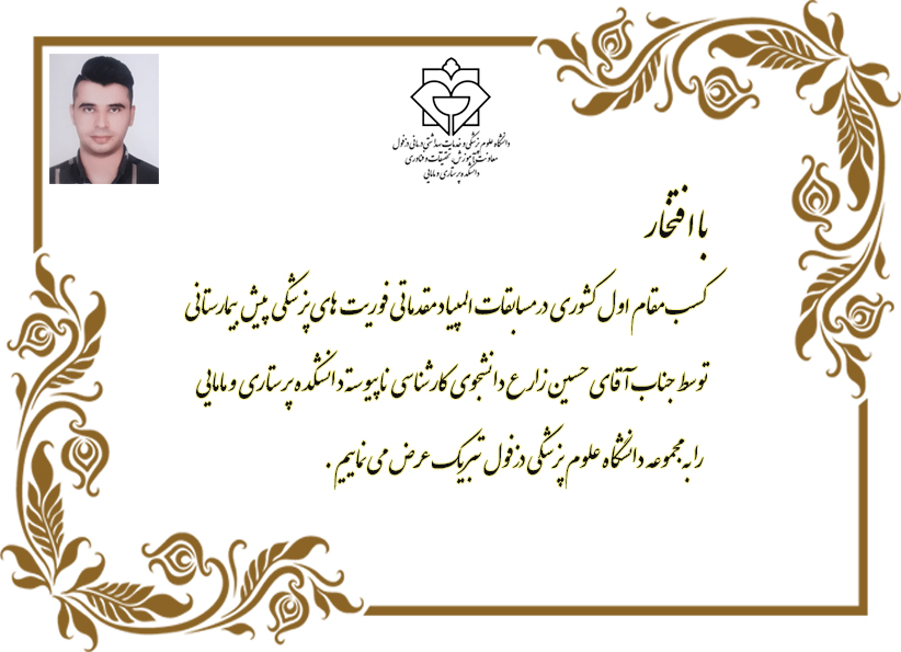 کسب مقام اول کشوری در مسابقات المپیاد کشوری کسب مقام اول کشوری دانشجوی کارشناسی فوریت های پزشکی در مسابقات المپیاد مقدماتی فوریت های پزشکی گروه خبری : اطلاعیه ها,رویدادها,تصاویر کد خبر : 15860 کلمات کلیدی پرستاری